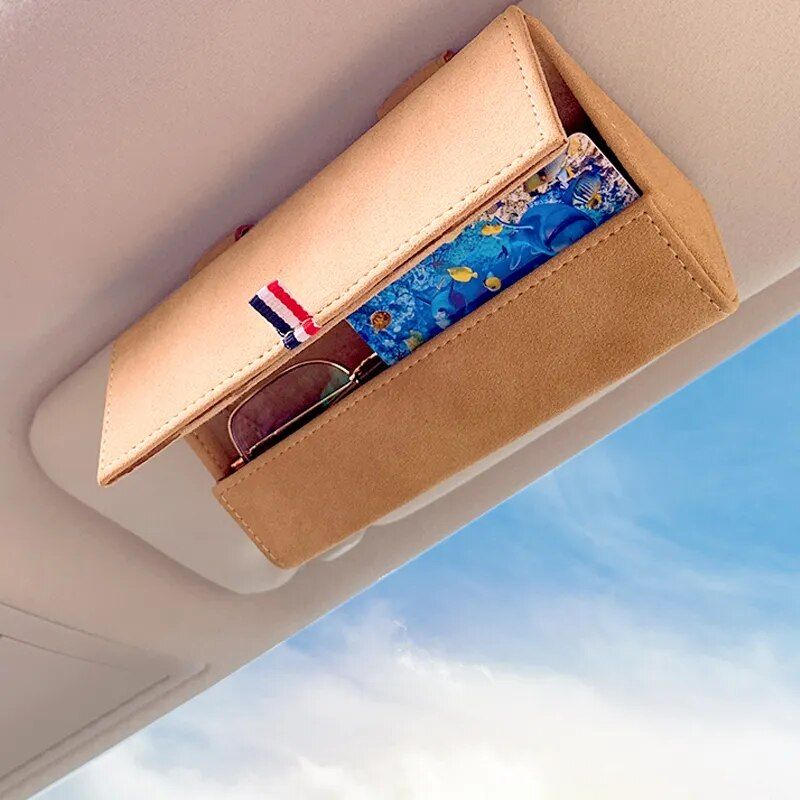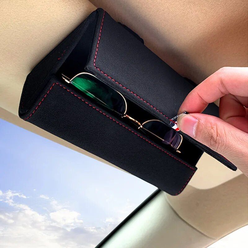 Introducing the perfect companion for drivers and sunglass enthusiasts! Say goodbye to haphazardly tossing your eyewear on the dashboard or seats. This Universal Sun Visor Suede Leather Glasses Organizer effortlessly combines style and functionality, providing a sleek and secure spot for your precious eyewear while you drive.