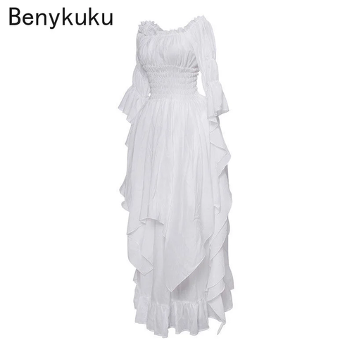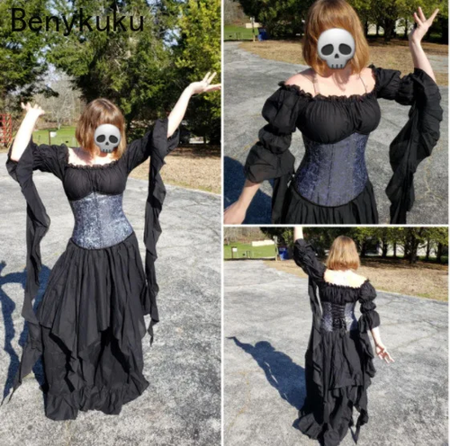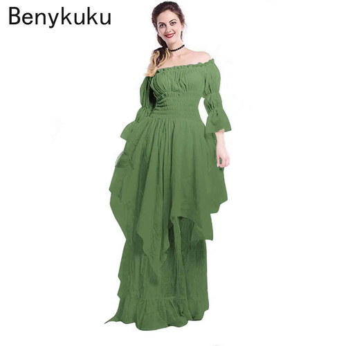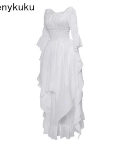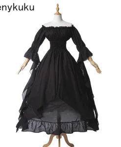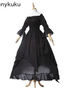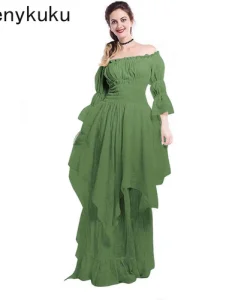 This stunning Vintage Victorian Medieval Dress is available in black, green, red, blue, and white, making it perfect for cosplay, Halloween costumes, prom princess gowns, or any occasion requiring an elegant and gothic touch. Available in sizes up to 5XL, this dress features a classic slim waist with a flowing A-line silhouette, offering a stylish, youthful look with a retro, punk-inspired edge.