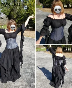 This dress blends elegance with a gothic twist, making it a standout piece for any formal or themed event.
