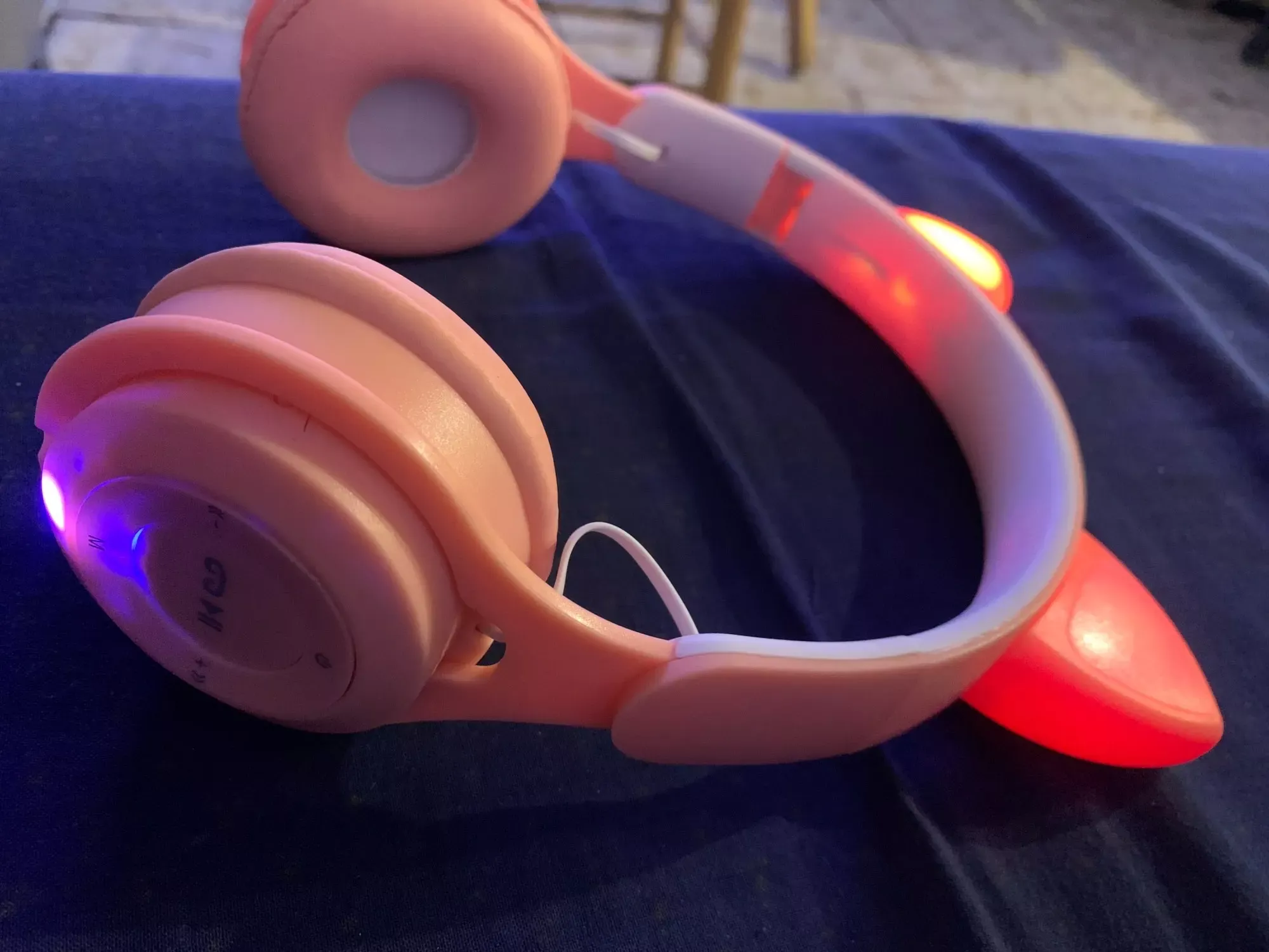 Cute ears light up when on, suitable for adults. Soft ear cushions and easy-to-use buttons.