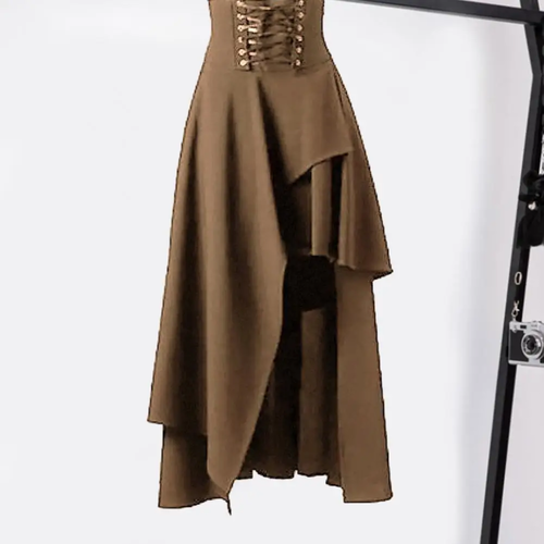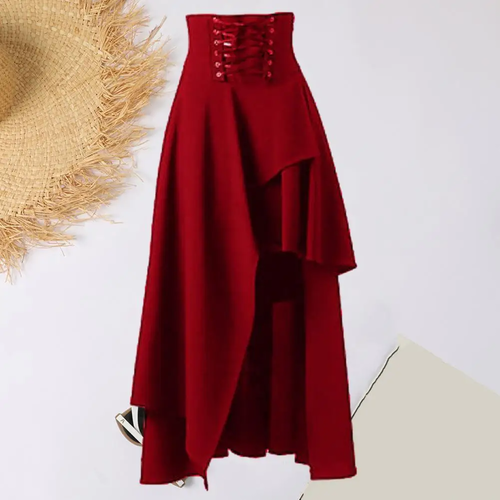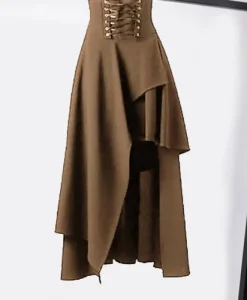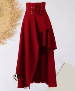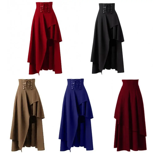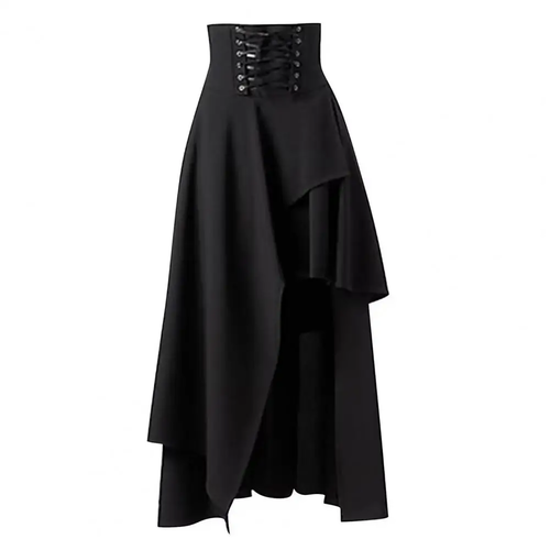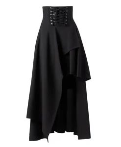 Embrace a stunning combination of medieval, renaissance, gothic, and steampunk styles with this Cosplay Pirate Costume Skirt. Made from soft, breathable polyester, this maxi skirt features a high waist and irregular hem that adds elegance and a vintage flair to any outfit. The gothic-inspired criss-cross waist design with button-breasted details offers a unique and edgy touch. Perfect for a wide range of occasions including Halloween cosplay, weddings, parties, and vacations, this versatile skirt is ideal for retro looks and mid-century renaissance costumes. Whether you’re attending a themed event or simply want to make a statement, this skirt is sure to help you stand out from the crowd.