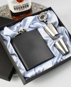 - Set: Flask, Funnel, 2 Shot Cups, Gift Box